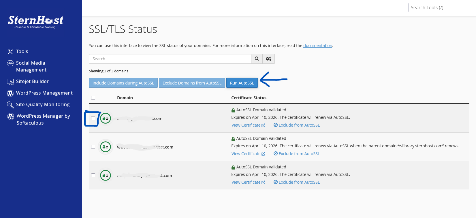 Sometimes, after adding a new domain or subdomain to your SternHost account, the free SSL certificate may not activate immediately. Instead of waiting for the system's daily automated check, you can manually trigger the AutoSSL feature to secure your site instantly.